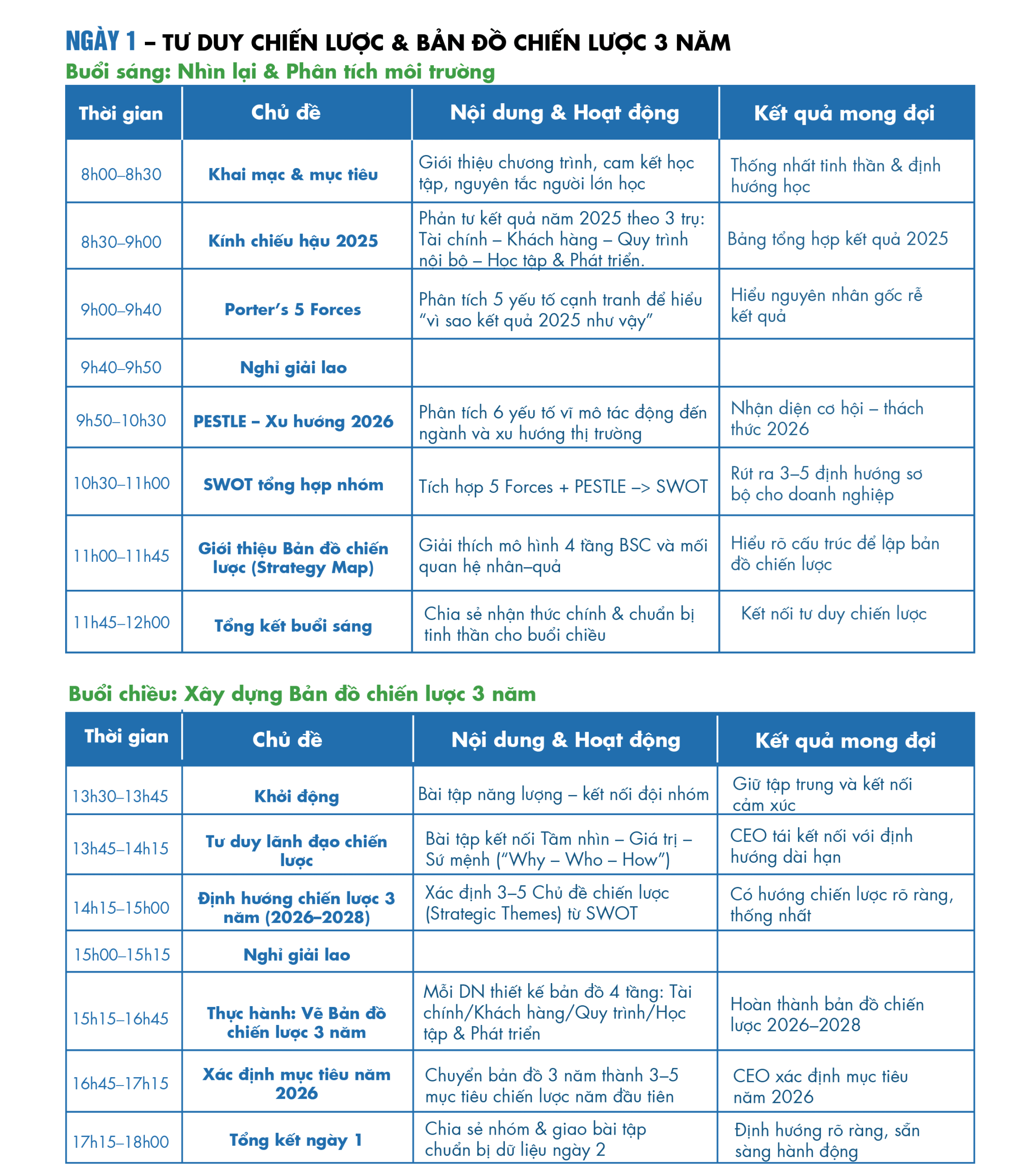 LỊCH HỌP & CƠ CHẾ VẬN HÀNH CHIẾN LƯỢC