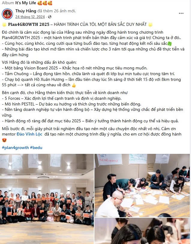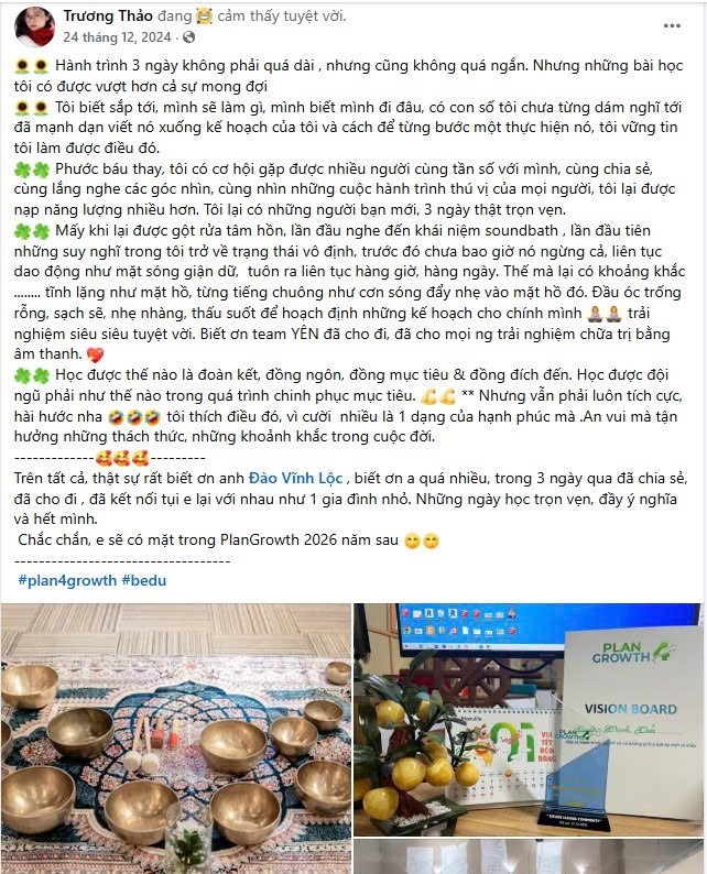 Plan4Growth là chương trình đào tạo 2 ngày vào tháng 12 hằng năm, giúp doanh nghiệp chuyển hóa từ tầm nhìn đến thực thi cho doanh nghiệp của mình. Đến với chương trình, bạn sẽ có được: